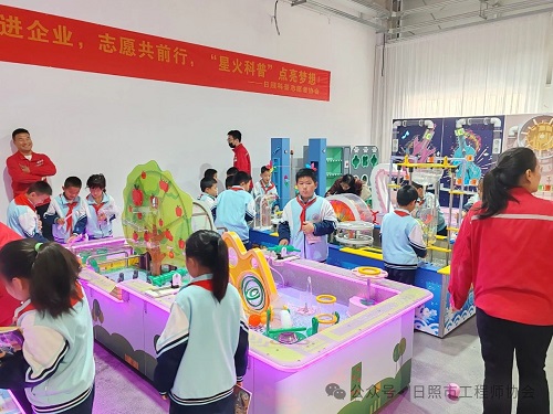 这是日照市“红领巾.出发啦”研学实践活动的其中一站。孩子们走进深蓝科教智慧化生产车间,在公司董事长、总经理、研发总监、日照市科普志愿者协会会长、日照市工程师协会会长陈万韬的带领下,参观产品生产过程,并在企业展厅体验公司自主研发制造的科教展品。